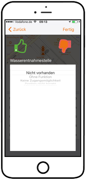 Gewünschte Wasserentnahmestelle für die Bewertung auswählen.[/caption]