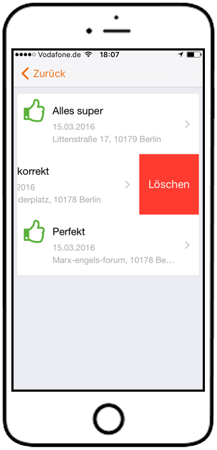 3. Schritt: Aufrufen des Lösch-Buttons (Fingerwisch nach links)[/caption]