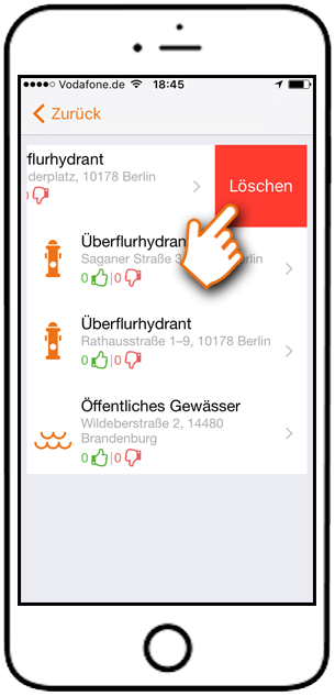 Die Löschung selbst hinterlegter Wasserentnahmestellen erfolgt wie in der Schritt für Schritt Anleitung dargestellt.